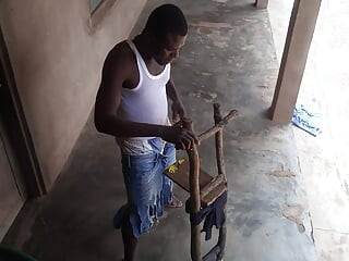 हॉट काला जंगली लड़का अपने बालों वाले छेद को दिखा रहा है