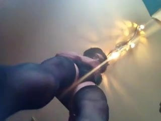 काले अंडरवियर पहने हुए मेरे लंबे दस्ताने पहनना